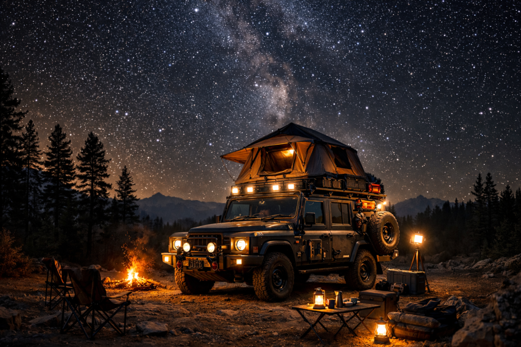 Available accessories include roof racks, ladders, winches, skid plates, auxiliary lighting, and storage solutions. These additions integrate seamlessly with the vehicle, maintaining its structural integrity and aesthetic coherence.